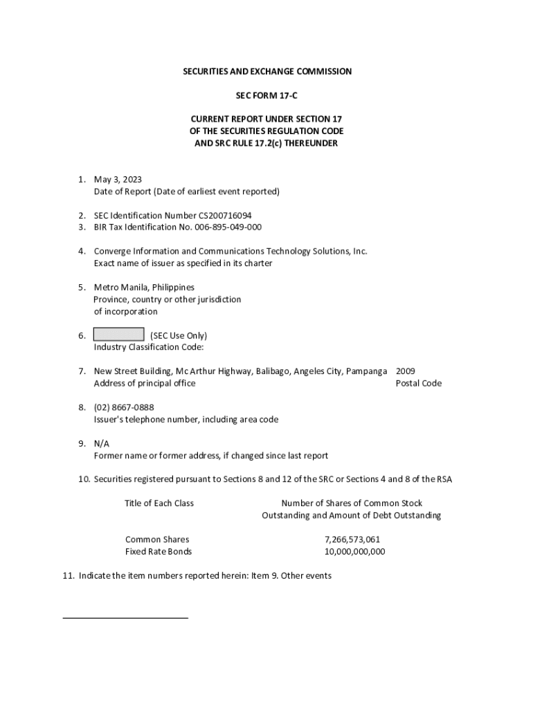 SECURITIES AND EXCHANGE COMMISSION SEC FORM 17C CURRENT REPORT UNDER SECTION 17 OF THE SECURITIES REGULATION CODE AND SRC RULE 17.2(c) THEREUNDER1. May 3, 2023, Date of Report (Date of the earliest