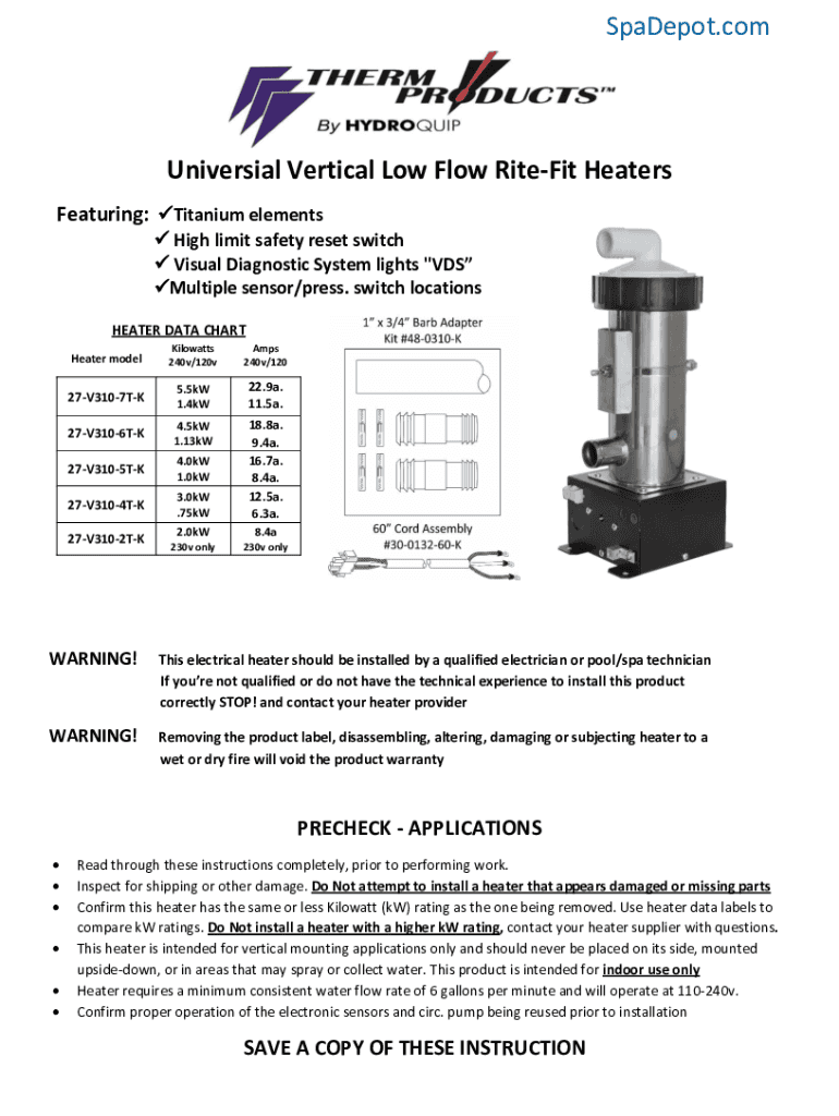 Get the free BX5967 Universal Vertical Low-Flow Spa Heater. Universal Vertical Low Flow Canister ...