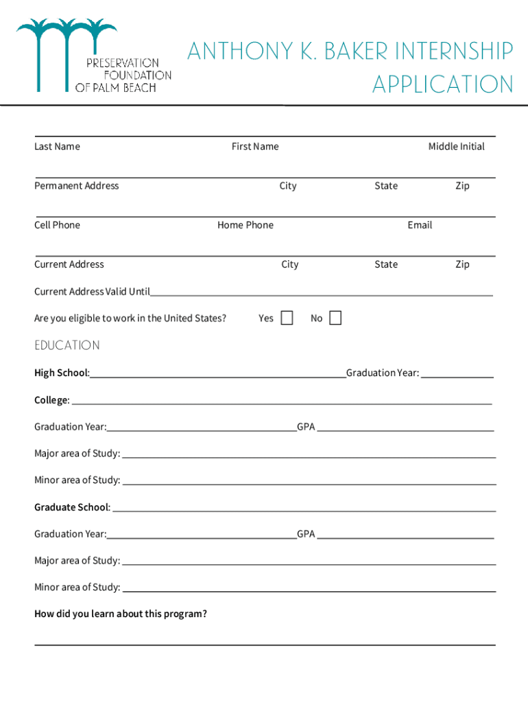 Get the free Anthony k. baker internship application