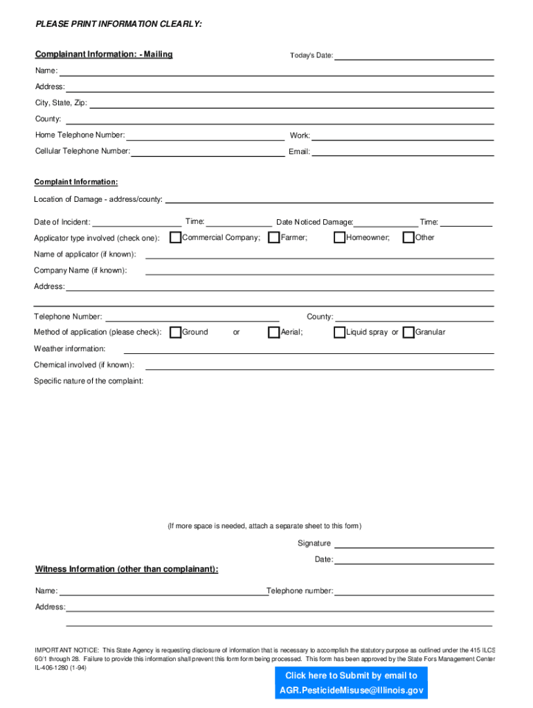 PESTICIDE INCIDENT COMPLAINT FORM INSTRUCTIONS The complaint form on the reverse side of this page is provided to assist in the submittal of information associated with an alleged pesticide misuse