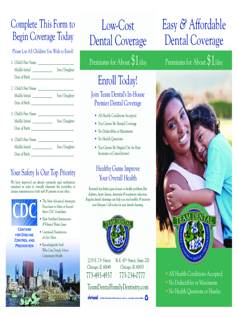 The Lowest Dental CoverageComplete This Form to Begin Coverage Today Please List All Children You Wish to EnrollPremiums for About1. C holds First Name ___ Middle Initial ___ Son / Daughter Date of