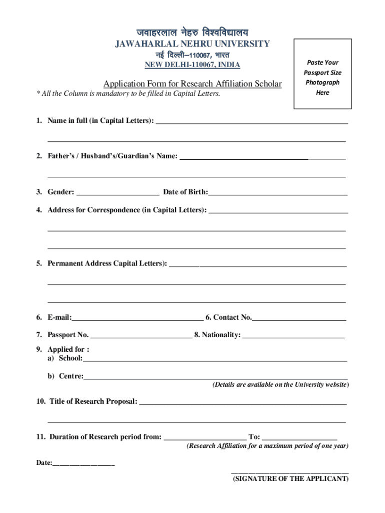 NEW DELHI110067, INDIAApplication Form for Research Affiliation Scholar