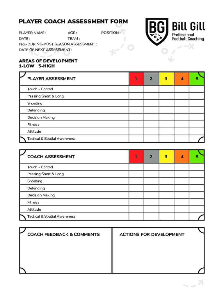 The bill-gill-player-coach-assessment-form is a form used to evaluate the performance of players and coaches.