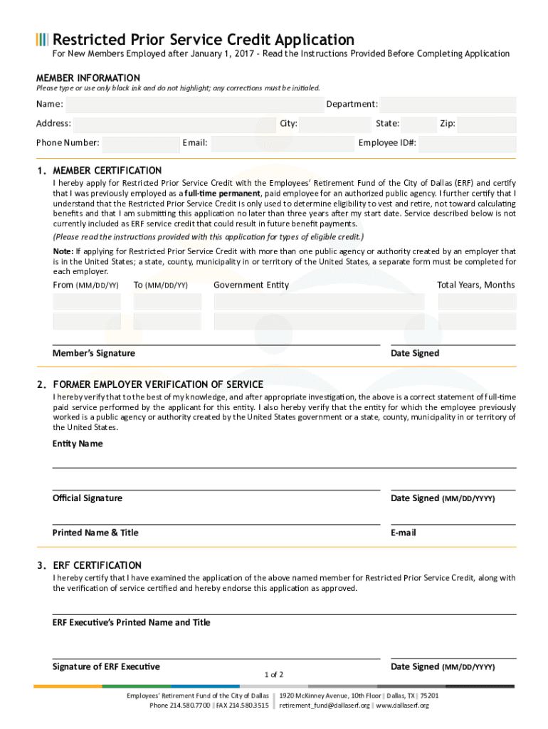 Restricted prior service credit can be filled out by providing all required information and documentation as instructed.