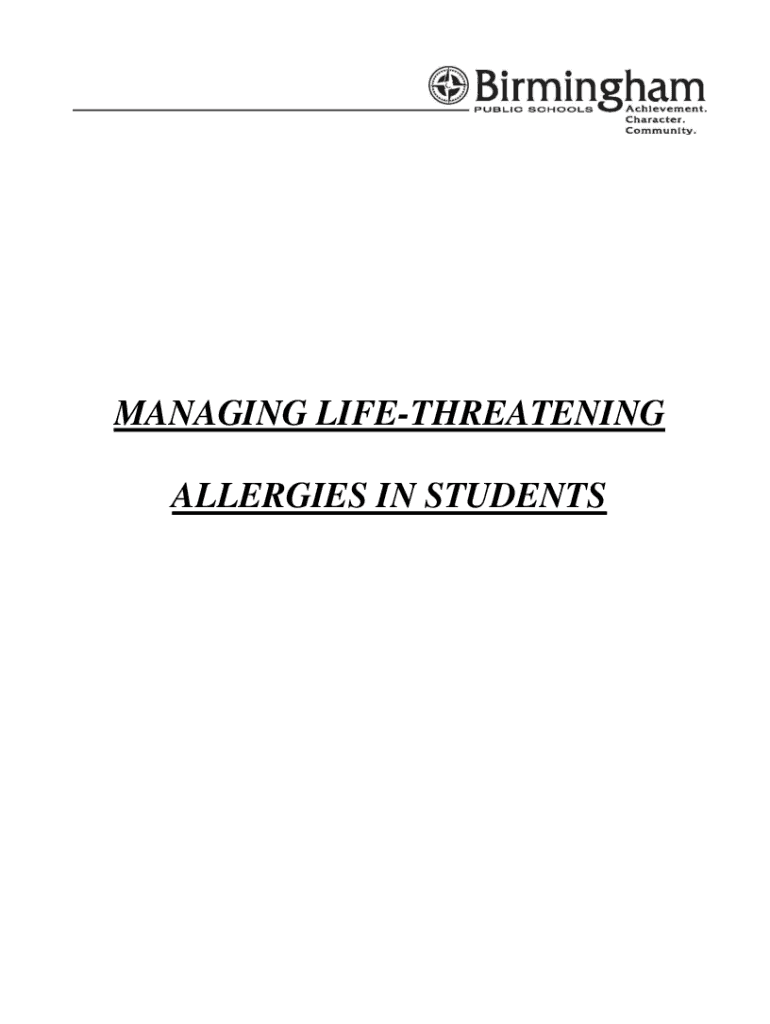 MANAGING LIFE-THREATENING ALLERGIES IN STUDENTSTABLE OF CONTENTS OVERVIEW ...........................................................................................................................................