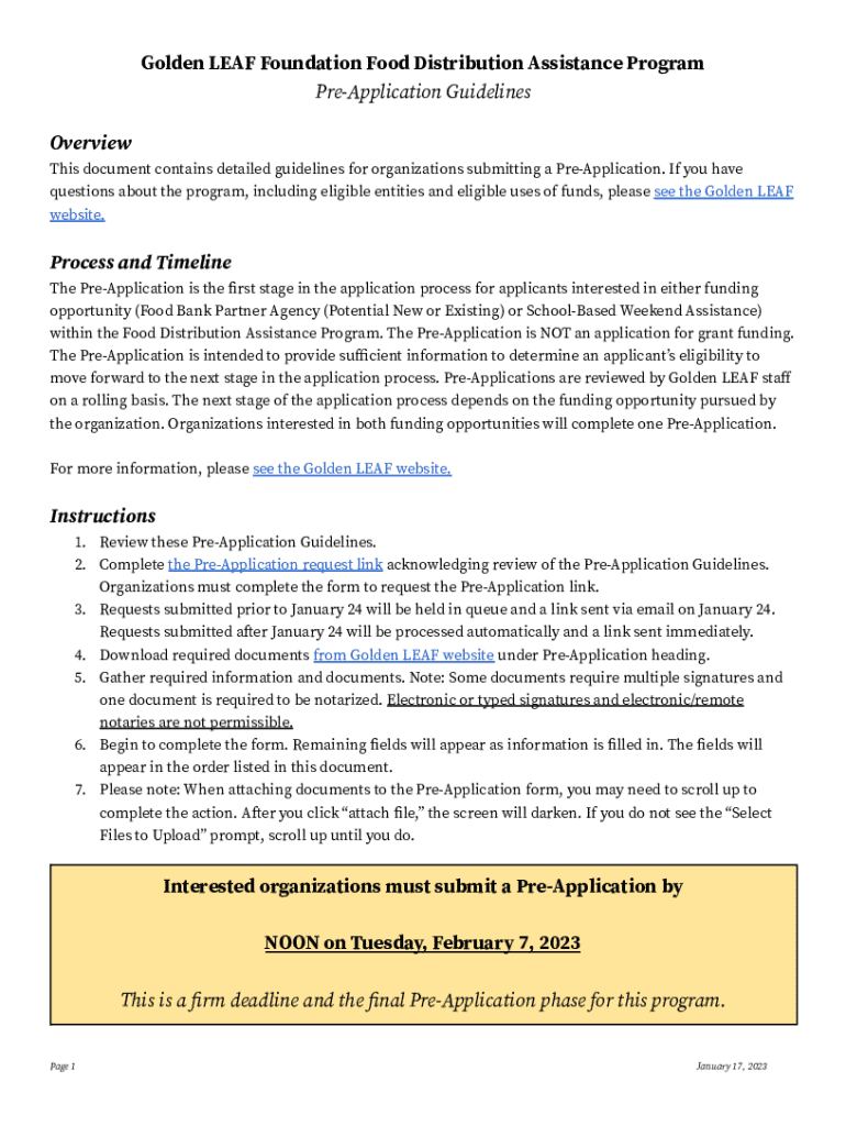 Golden LEAF Foundation Food Distribution Assistance Program Reapplication Guidelines Overview This document contains detailed guidelines for organizations submitting a Reapplication. If you have questions
