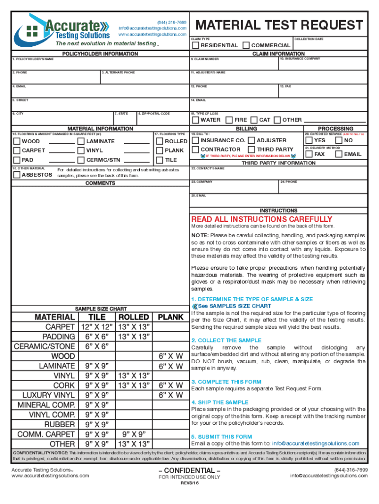 Accurate Testing Solutions(844) 3167699 info@accuratetestingsolutions.com www.accuratetestingsolutions.comThe next evolution in material testingMATERIAL TEST REQUEST CLAIM TYPERESIDENTIAL1. POLICYHOLDERS