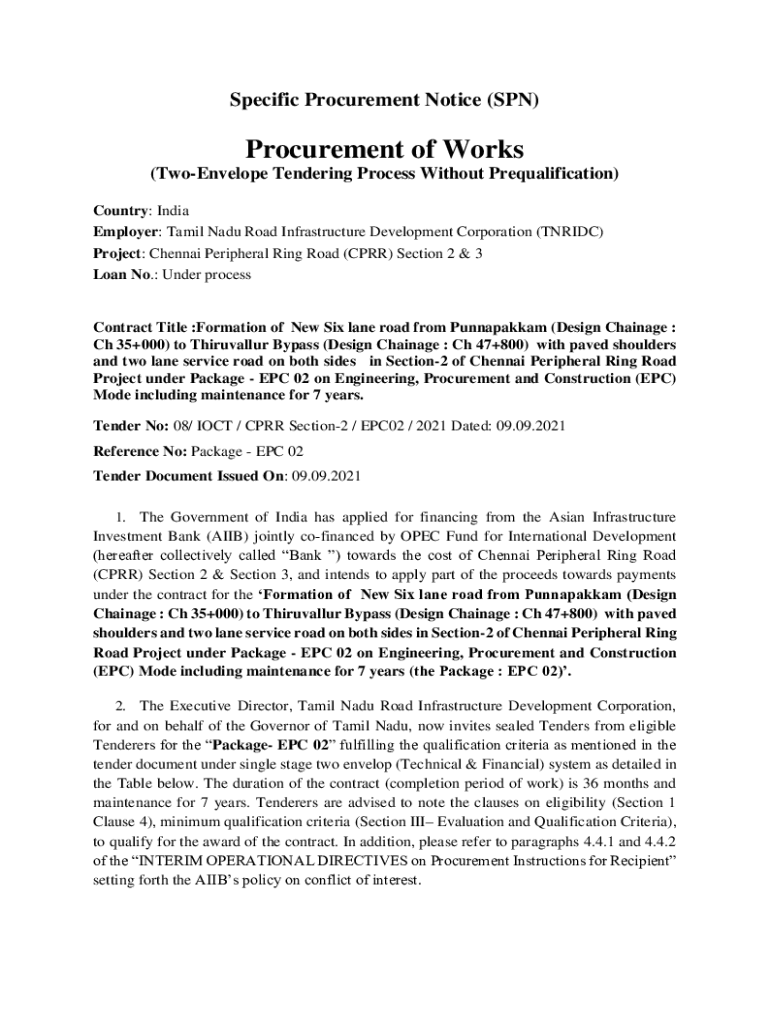 Get the free Two-Envelope Tendering Process Without Prequalification