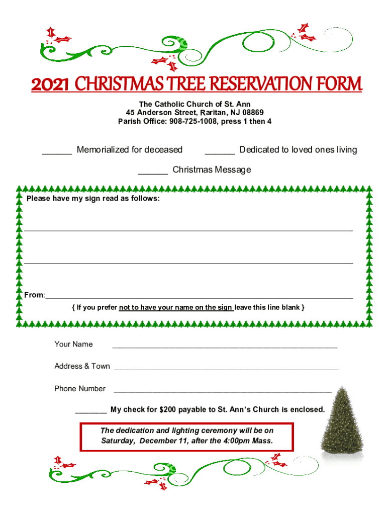 Parish Office: 9087251008, press 1 then 4___ Memorialized for deceased___ Dedicated to loved
