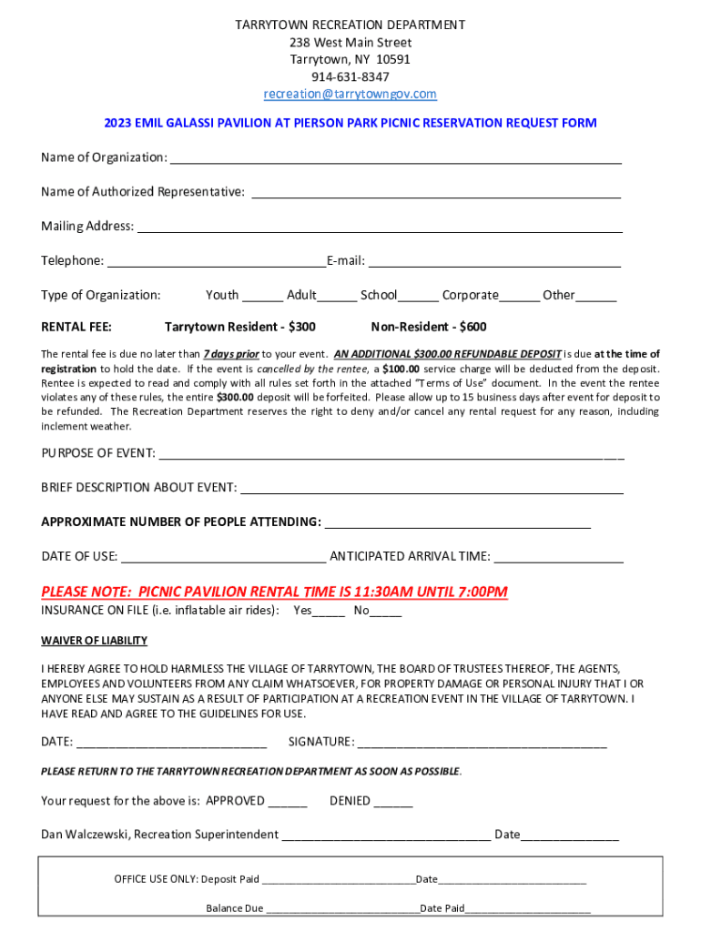 2023 EMIL GALA SSI PAVILION AT PIERSON PARK PICNIC RESERVATION REQUEST FORM