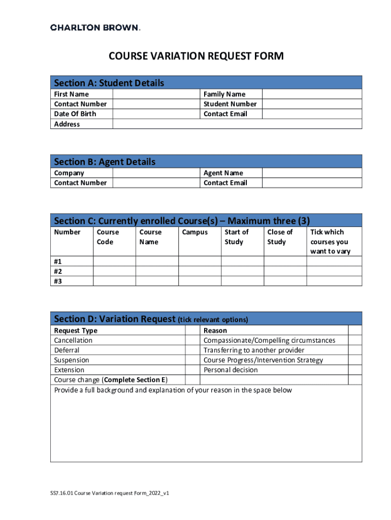 Individuals or entities who wish to change or add an agent to represent them in a specific matter may need to fill out an agent variation form.