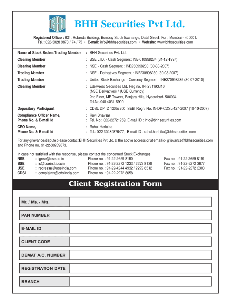 Completing the BHH Securities Client Registration Form is a vital step in the process of opening a brokerage account. It not only fulfills regulatory obligations but also protects the integrity of transactions within the Indian stock market.