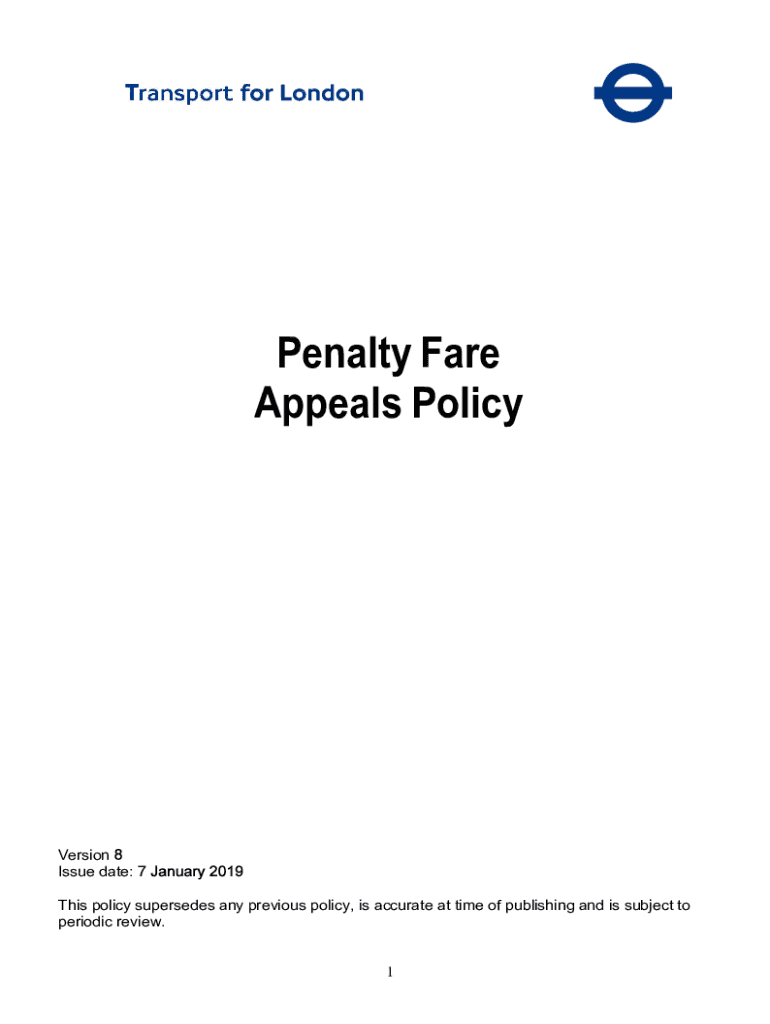 Penalty Fare Appeals PolicyVersion Issue date: This policy supersedes any previous policy, is accurate at time of publishing and is subject to periodic review. 1Penalty Fare Appeals Policy Contents