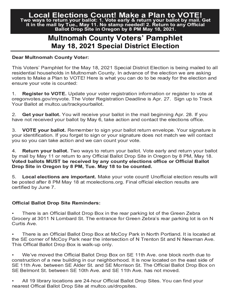 Local Elections Count! Make a Plan to VOTE! Two ways to return your ballot: 1. Vote early & return your ballot by mail. Get