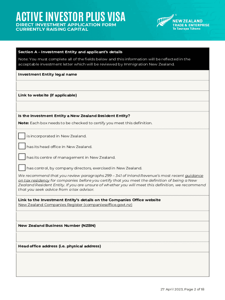 Get the free Acceptable Current Direct Investment Application Form - NZTE AIP - 160323