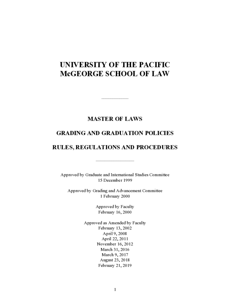 UNIVERSITY OF THE PACIFIC George SCHOOL OF LAW ___MASTER OF LAWS GRADING AND GRADUATION POLICIES RULES, REGULATIONS AND PROCEDURES ___ Approved by Graduate and International Studies Committee 15 December
