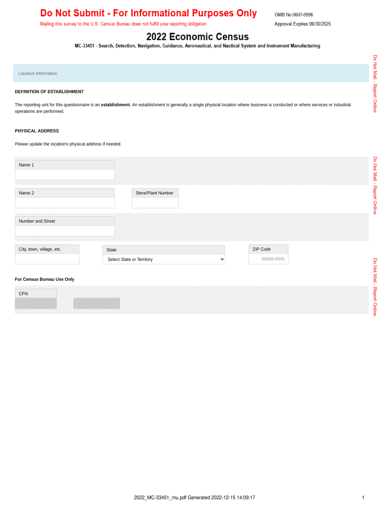 Location InformationDEFINITION OF ESTABLISHMENT The reporting unit for this questionnaire is an establishment. An establishment is generally a single physical location where business is conducted