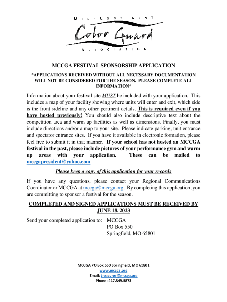 MCGA FESTIVAL SPONSORSHIP APPLICATION *APPLICATIONS RECEIVED WITHOUT ALL NECESSARY DOCUMENTATION WILL NOT BE CONSIDERED FOR THE SEASON. PLEASE COMPLETE ALL INFORMATION×Information about your festival