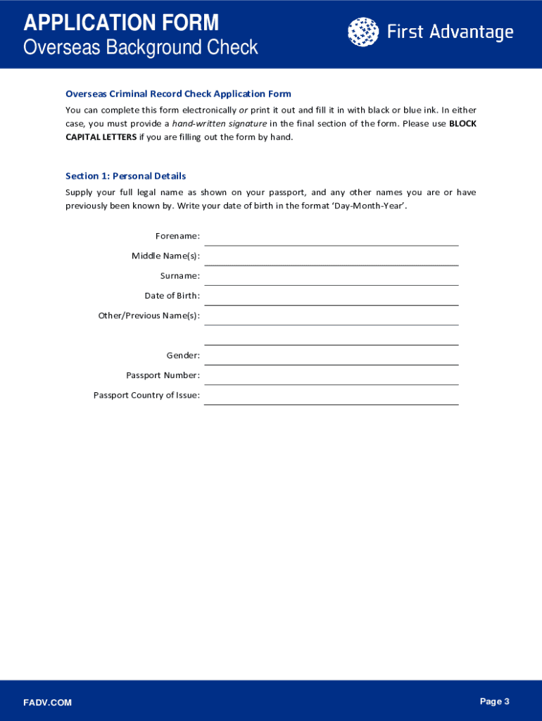 APPLICATION FORM Overseas Background Check China Background Check Information This application form captures the information that First Advantage Ltd needs in order to process an Overseas Background