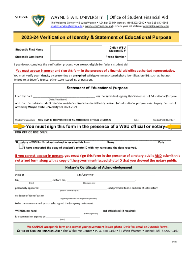 Get the free 2023-24 Verification of Identity & Statement of Educational Purpose