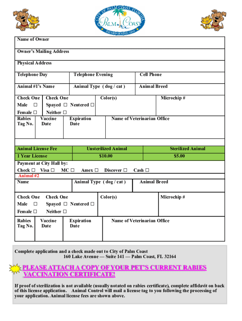 Telephone EveningCell PhoneAnimal #1s NameAnimal Type (dog / cat)Animal Breeches One
