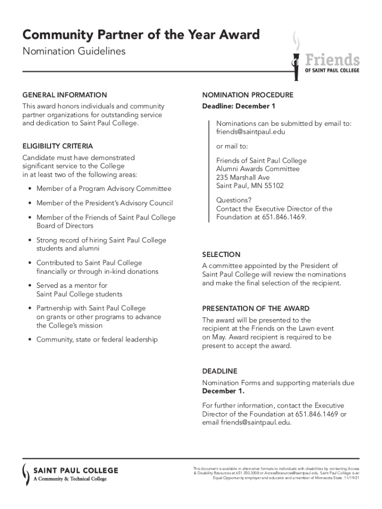 Get the free Community Partner of the Year Award
