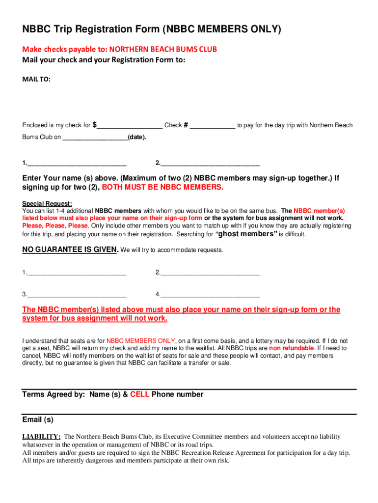 Get the free NBBC Trip Registration Form (NBBC MEMBERS ONLY)