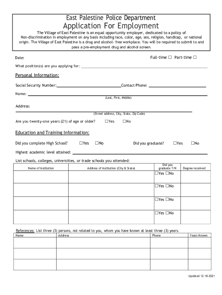 Get the free East Palestine Police Department Application for ...