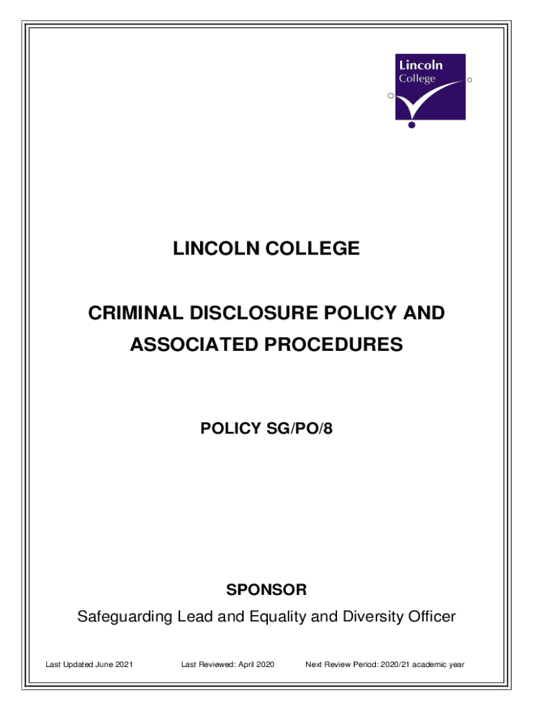 LINCOLN COLLEGECRIMINAL DISCLOSURE POLICY AND