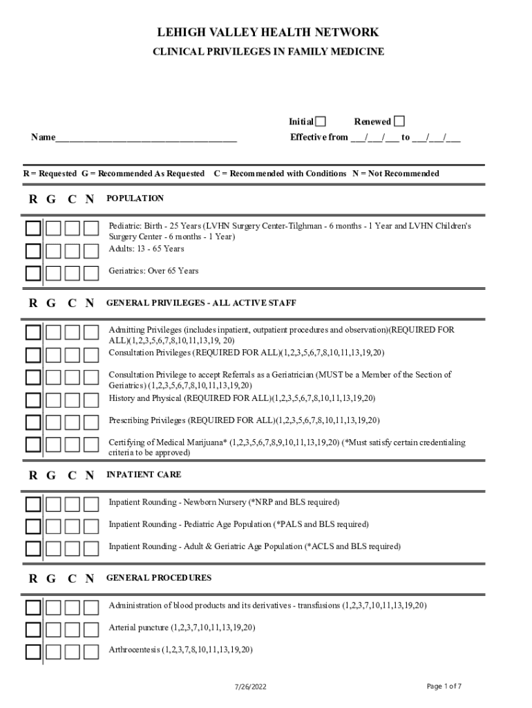 CLINICAL PRIVILEGES IN FAMILY MEDICINEInitial