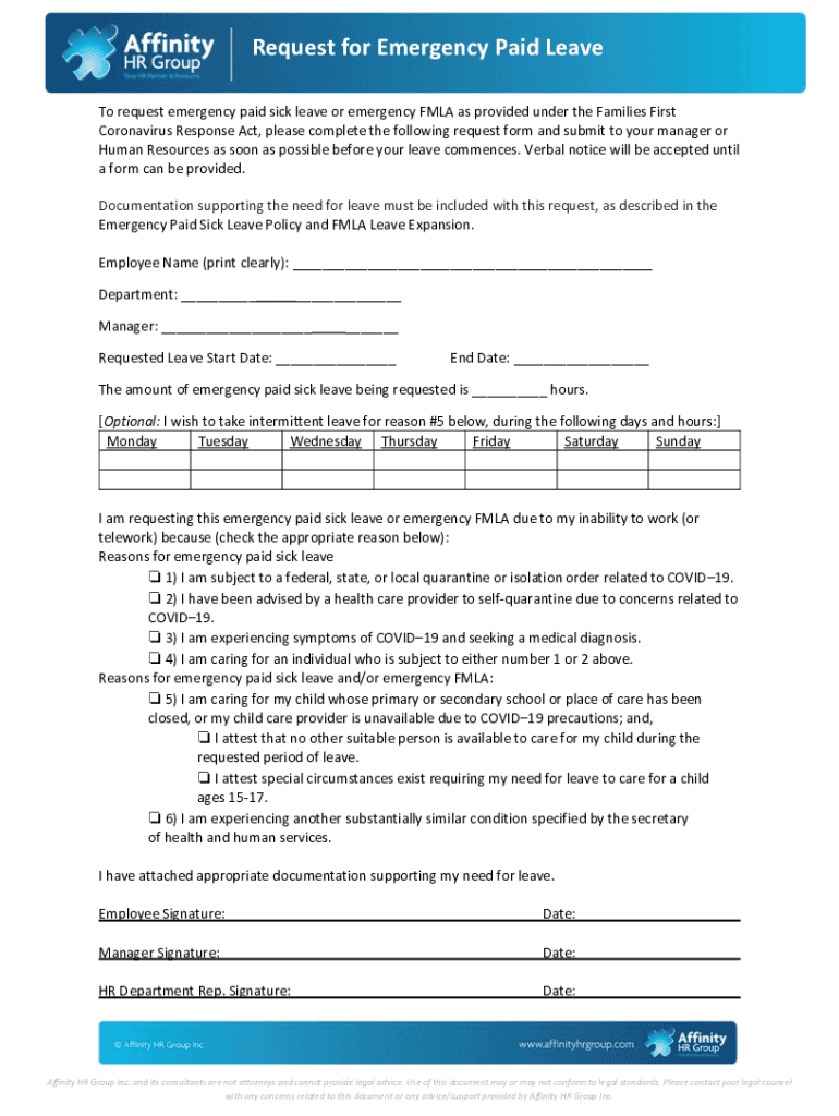 Request for Emergency Paid Leave To request emergency paid sick leave or emergency FMLA as provided under the Families First Coronavirus Response Act, please complete the following request form and