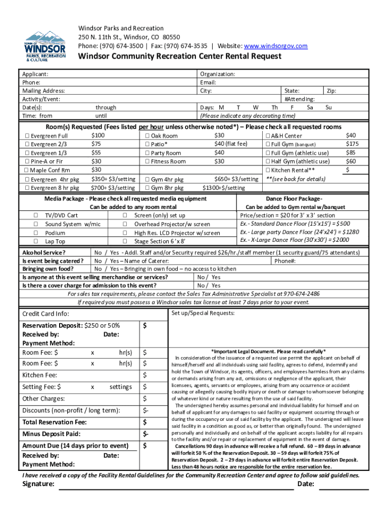 Get the free Windsor Community Recreation Center Rental Request