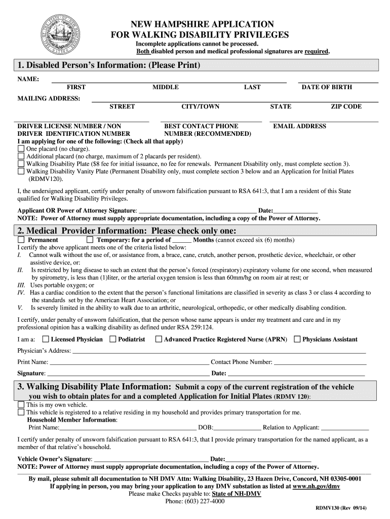 Get the free NEW HAMPSHIRE APPLICATION FOR WALKING DISABILITY - nh