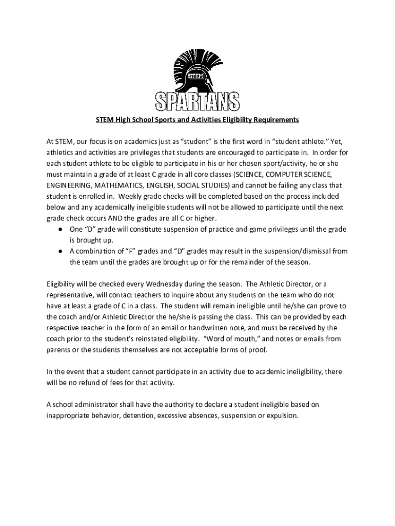 STEM High School Sports and Activities Eligibility Requirements At STEM, our focus is on academics just as student is the first word in student athlete. Yet, athletics and activities are privileges