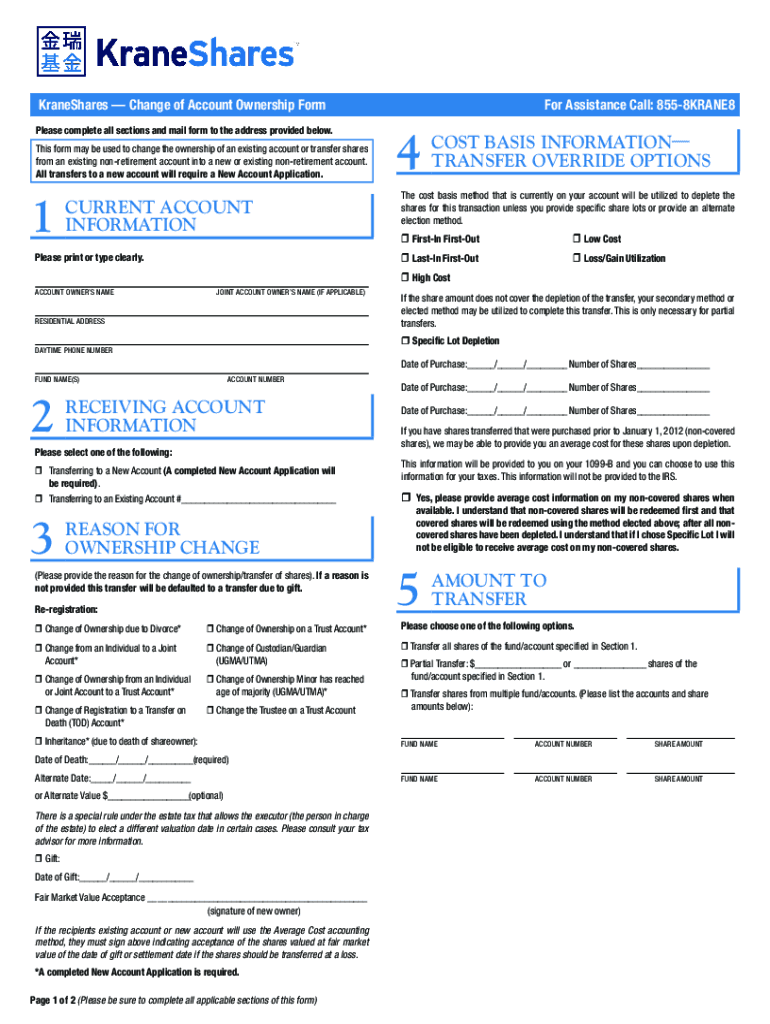 Reshares Change of Account Ownership Form Please complete all sections and mail form to the address provided below. This form may be used to change the ownership of an existing account or transfer