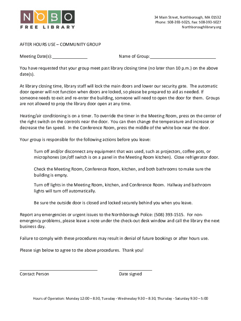 Northboroughlibrary. Drafter HOURS USE COMMUNITY GROUP