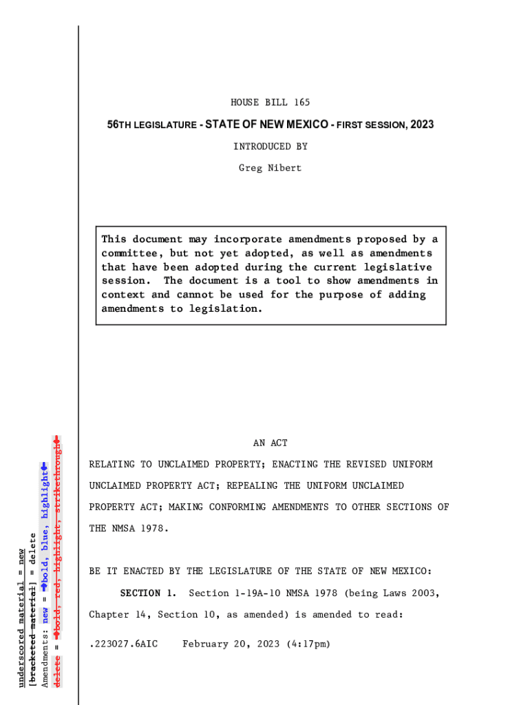 HOUSE BILL 16556TH LEGISLATURE STATE OF NEW MEXICO FIRST SESSION, 2023 INTRODUCED BY Greg Nibertunderscored material new [bracketed material] delete Amendments: new bold, blue, highlight delete bold,