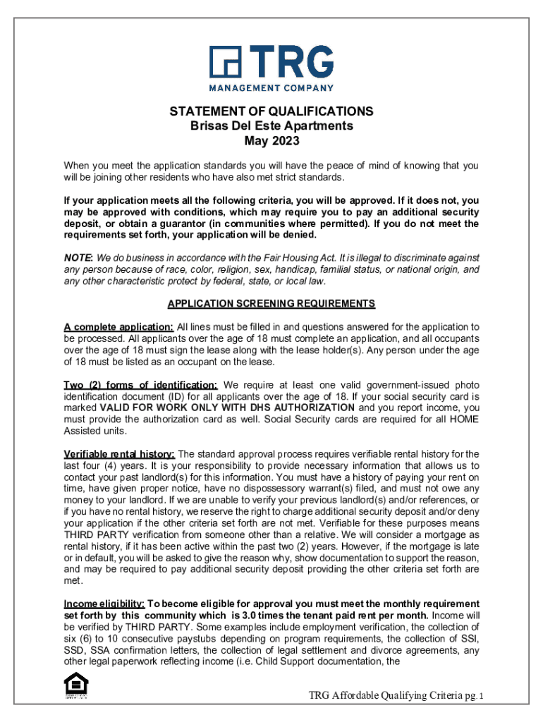 STATEMENT OF QUALIFICATIONS Brisks Del Ester Apartments May 2023 When you meet the application standards you will have the peace of mind of knowing that you will be joining other residents who have