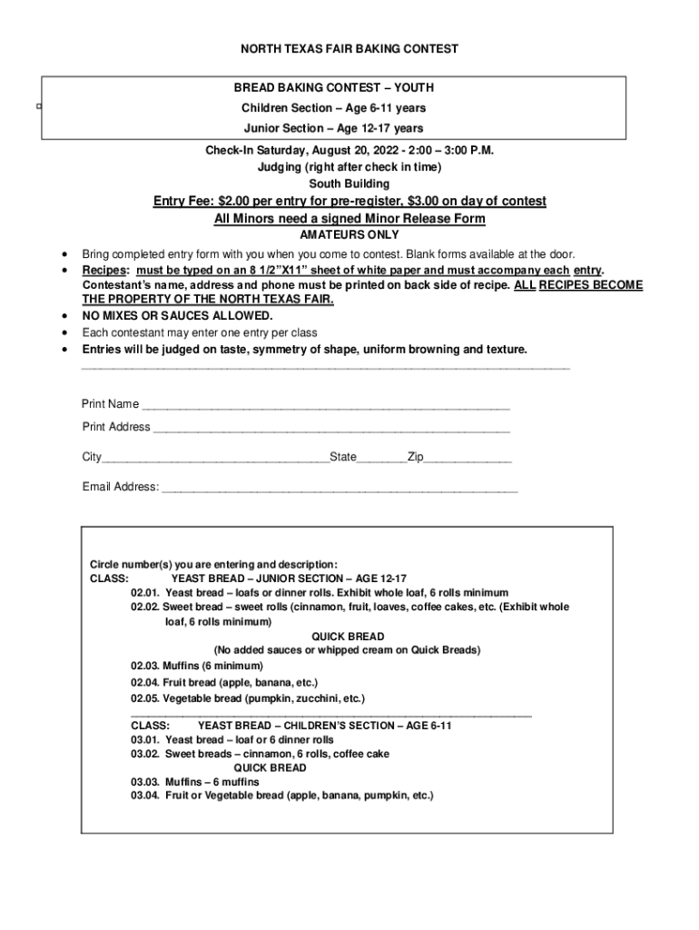 How to fill out north texas fair baking