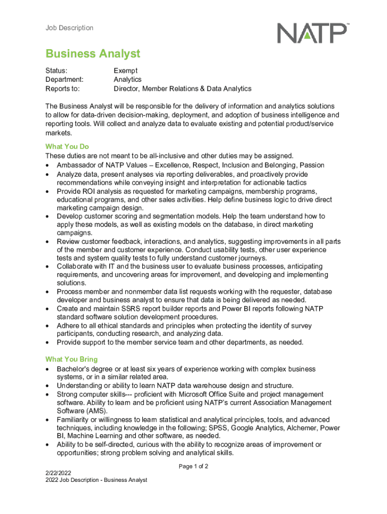 Get, Create, Make and Sign business analyst job description