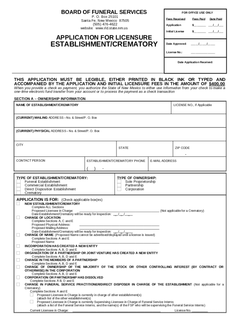 NEW MEXICO BOARD OF THANATOPRACTICE template instructions