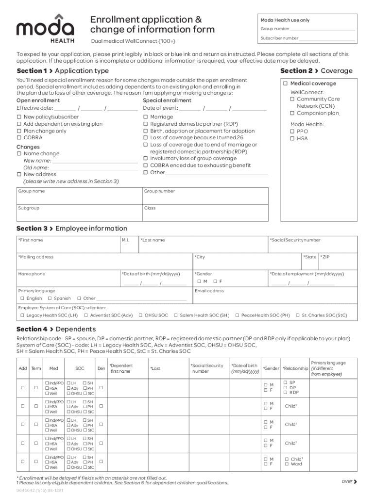 Enrollment application & change of information Formosa Health use only Group numberSubscriber numerical medical Reconnect (100+)To expedite your application, please print legibly in black or blue