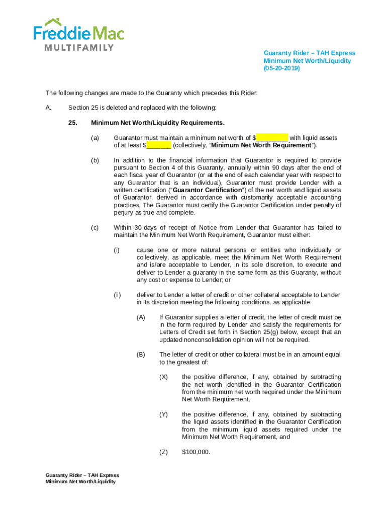 The Net Worth and Liquidity Sample Clauses is a writable document that can be completed and signed for certain purposes. Next, it is provided to the actual addressee to provide certain information of certain kinds. The completion and signing is available manually or via a trusted solution like PDFfiller. These services help to fill out any PDF or Word file without printing them out. While doing that, you can edit its appearance depending on your requirements and put an official legal digital signature. Once done, you send the Net Worth and Liquidity Sample Clauses to the respective recipient or several of them by mail or fax. PDFfiller has a feature and options that make your Word template printable. It has various options for printing out appearance. It does no matter how you deliver a form - physically or by email - it will always look well-designed and firm. To not to create a new document from the beginning all the time, make the original form as a template. Later, you will have an editable sample.