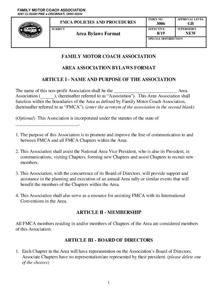 Get the free Bylaws of Family Motor Coach Association, Inc.
