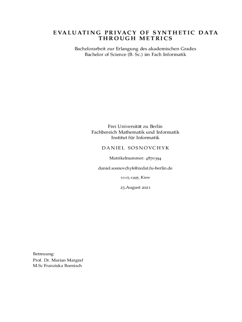 Get the free E VA L U AT I N G P R I VA C Y O F S Y N T H E T I C D ...