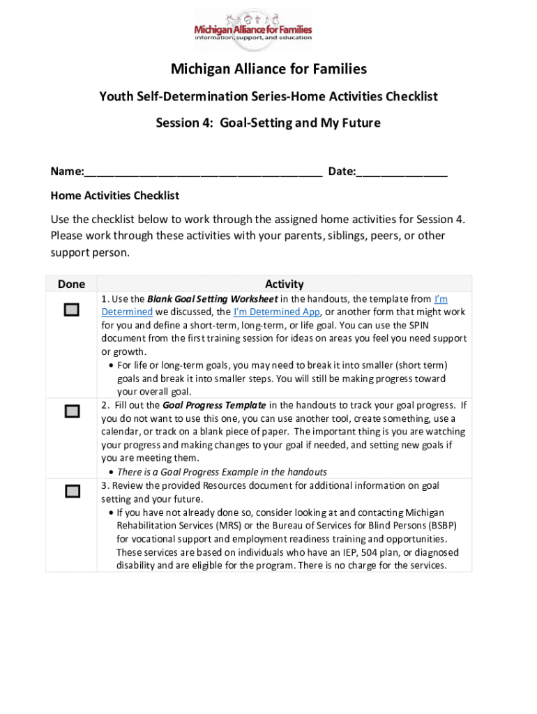 Get the free Youth Self-Determination Series-Home Activities Checklist. Youth Self-Determination ...