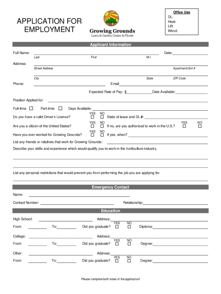 Fill in your employment history including previous jobs, positions held, and dates of employment.