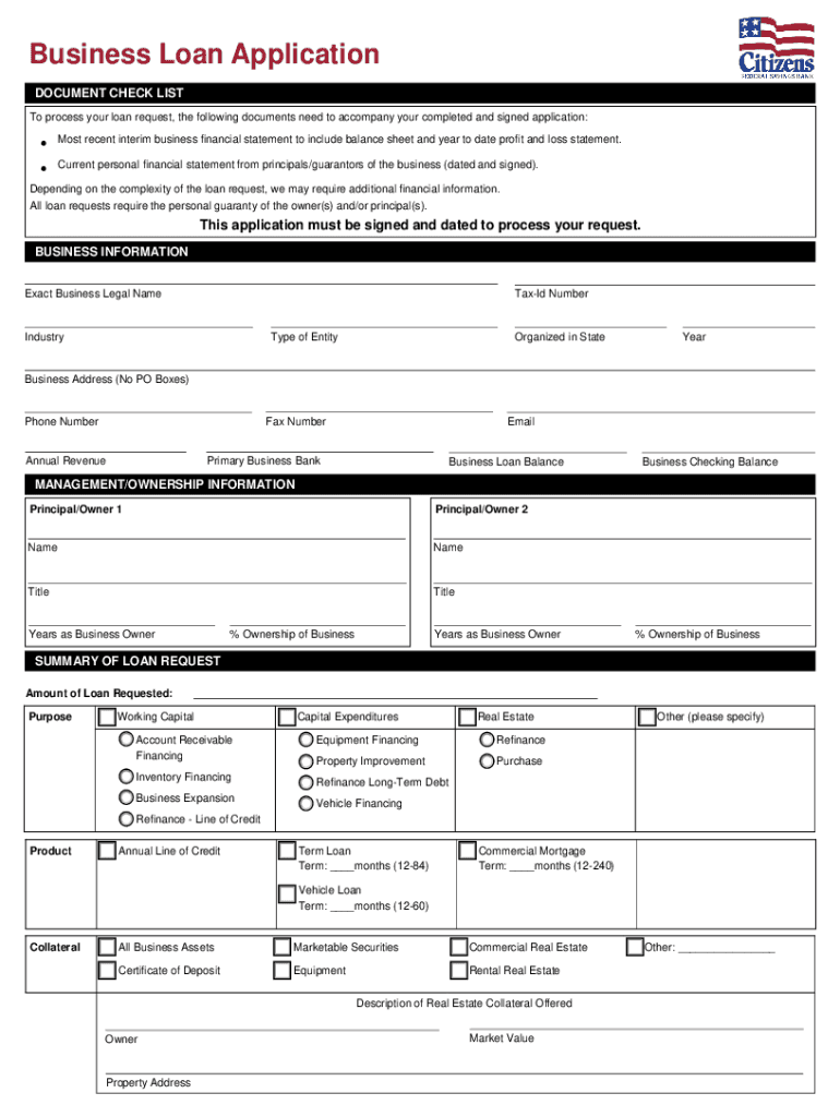 Commercial Loan Application Process Welcome to Citizens FSB Commercial Lending Services. We offer a full range of quality financial products designed to help your business meet the demands of today's