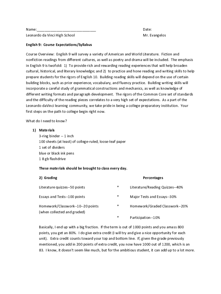Mr. EvangelosEnglish9:CourseExpectations/Syllabus