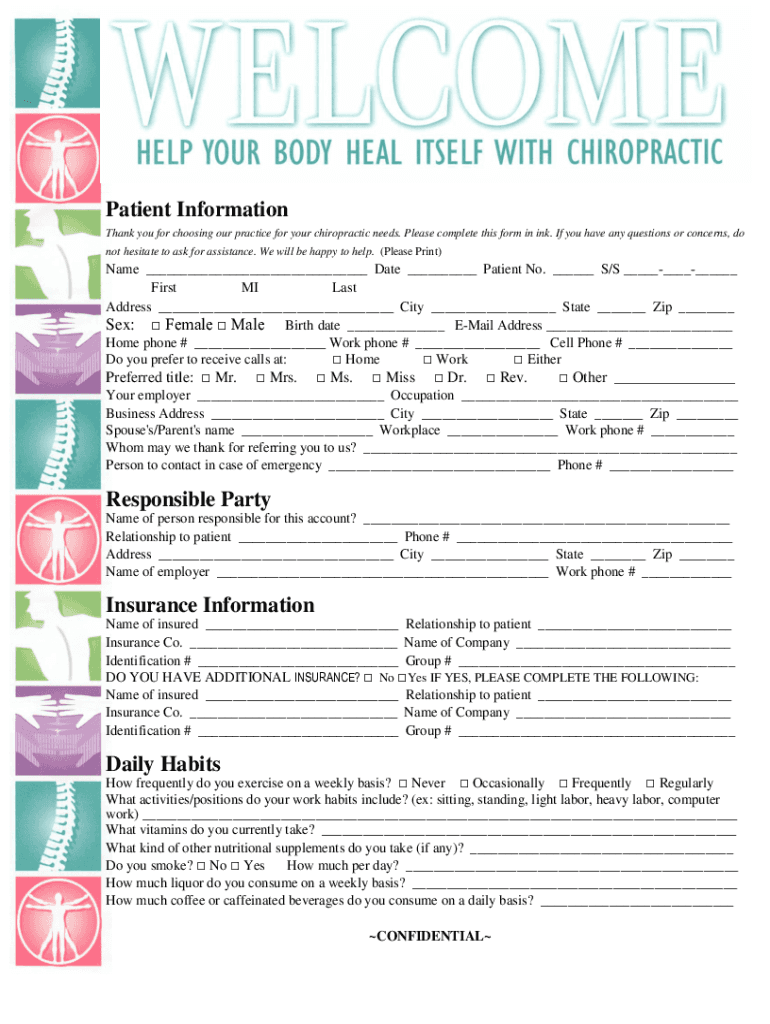Get the free Patient Intake Form - Sparta Chiropractic & Wellness Center